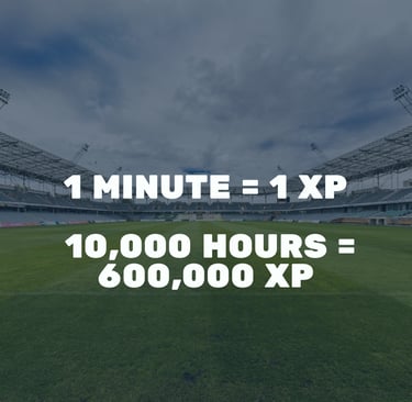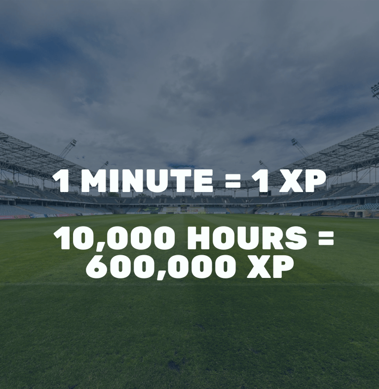 Matches (~40/year × 90 min) = 3,600 XP, with bonus XP = ~5,000+ total